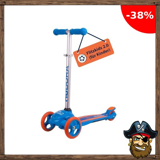 • HUDORA Scooter Flitzkids 2.0 I Stabiler Kinderscooter Pi;rate-Deals mit großer T…