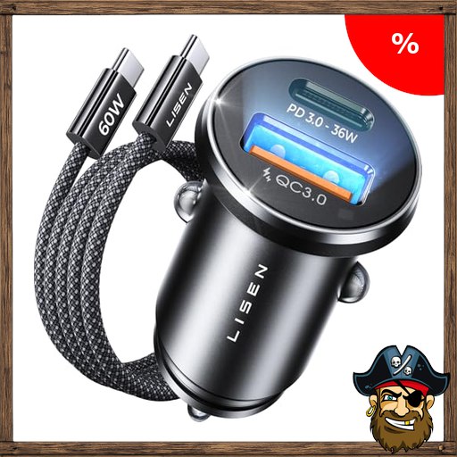 LISEN 54W Zigarettenanzünder USB C PD&QC3.0 12V USB Adapter Auto Ladegerät mit 60W Kabel Metall USB Zigarettenanzünder Adapter KFZ Ladegerät USB Pi~rate-Deals C für iPhone 17 Pro Max Air 16 Samsung S25 Ultra IPad