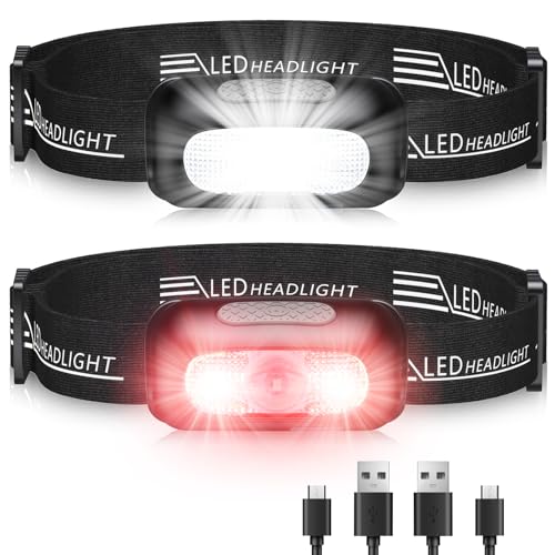 EOIWUY Stirnlampe, [2 Stück] Stirnlampe LED Wiederaufladbar Superhelle mit 5 Modi, Weißes und Rotes Licht & IPX4 Wasserdicht, 60° Verstellbare Kopflampe Laternenzubehör Pirαt!е-Dеαls für Joggen/Camping/Erwachsene