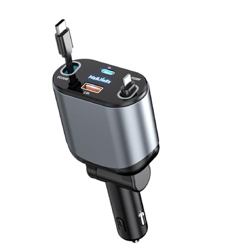 4 in 1 Zigarettenanzünder USB C, Einziehbares Auto Ladegerät 80W Autoladegerät S…