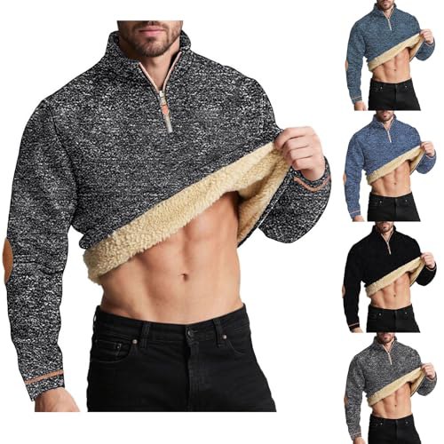 UHouse Herren Sweatshirt Gefüttert Winter Fleece Pullover mit Zip Dicke Sweatshirts Pirαtе~-Dеαls Warm Arbeitspullover Stehkragen Winterpullover Freizeit Wollpullover Einfarbig Fleecepullover Pulli Dunkelgrau M
