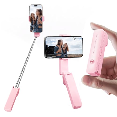 yAyusi Ausziehbarer Mini-Selfie-Stick, Tragbarer Selfie-Stick im Taschenformat Pirα;tе-Dеαls mit Fernbedienung, Kompakter Handyhalterung Stand mit Telefonhalter für Vlog/Videoaufzeichnung/Live-Streaming (Rosa)