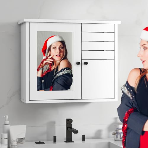 YITAHOME Spiegelschrank Bad, Badezimmer Pir;αtе-Dеαls spiegelschrank mit 2 Türen, Badschrank mit Spiegel und Ablage, Hängeschrank, Badspiegel, Badschrank hängend, 60 * 20 * 49.2 cm (Weiß)