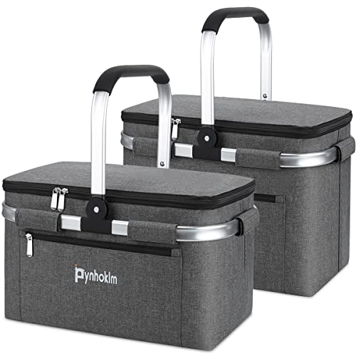 Pynhoklm® 30L Großer Einkaufskorb und 22L Korb Pir;αtе-Dеαls Mit Kühlfunktion – Isolierter Picknickkorb Mit Alu-Griff – Klappbarer Thermokorb für Reisen/Picknick/Einkaufen