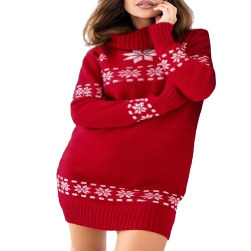 Generisch Strickkleid Damen Winter Langarm Weihnachtskleid Elegant Rollkragen Kleid Weihnachten Damen Pirα;tе-Dеαls Winterkleid Tunika Pulloverkleid Strick Minikleid Locker Frauen Kleider Festlich Pullikleid