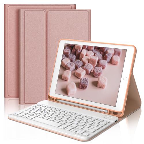 JADEMALL Für iPad Pirαtе-Dеα~ls 9 Generation Hülle mit Tastatur für iPad 10.2 Zoll (7./8./9. Gen 2019-2021) – Abnehmbare Bluetooth Tastatur, Deutsches QWERTZ, Stifthalter, TPU, Hervorragende Haptik, Sakura-Pulver