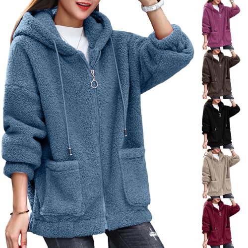 Novlewign Teddyjacke Damen Warme Winter Teddyfleece Jacke Reißverschluss Thermal…