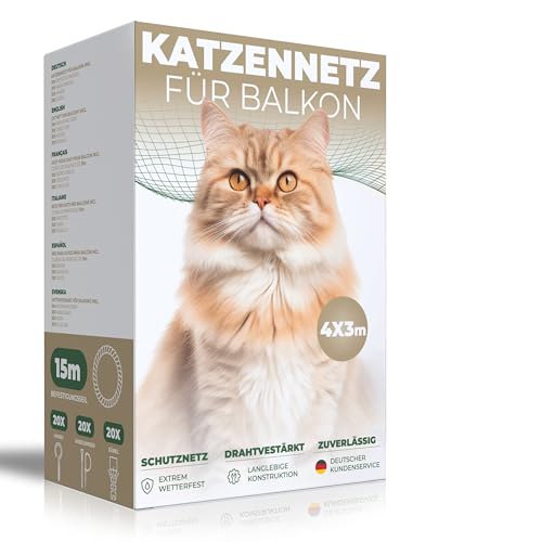WOOWOOD Katzennetz für Balkon [Ohne Bohren] – Katzennetz Pirα;tе-Dеαls Drahtverstärkt – Katzenschutznetz Wetterfest & UV-beständig – Katzengitter Inkl. 20 Kabelbinder & Dübel – Katzennetz Balkon und Fenster (4X3m)