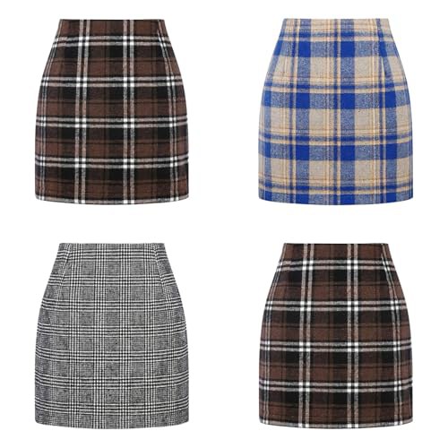Damen Kariert RöCke Knielang Pir#αtе-Dеαls Wollrock Winterrock Bodycon Elegant Minirock Bleistiftrock Plaid Skirt High Waist Kurzer Rock Klassischer Preppy-Stil Damenrock Modischer Winter Minirock