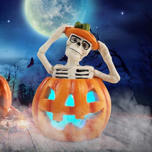 Halloween Deko Kürbis Skelett Laterne, Harz Halloween Kürbis Deko mit Halbkörper…