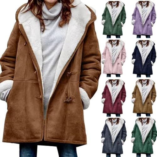 Winterjacke Damen Lange Kapuzenjacke Teddy-Fleece Mantel Flauschiger Plüschmante…