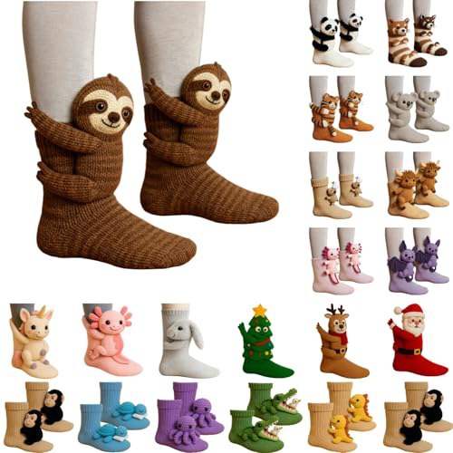Generisch 3D Stricksocken mit Tieren Damen Lustige Pirαtе-Dе:αls Kuschelsocken Warme Socken Animal Socks Faultier Socken Herren Weihnachtssocken Kinder Kuschelsocken Weihnachten Doppellagige Tiersocken