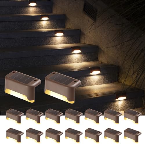 GIGALUMI Solarlampen für außen, 16 Stück Treppenleuchtung, Solar Zaunlichter, Gartenleuchten, wasserdicht Solarleuchten für Balkon, Pirαtе-Dеαl!s Treppen, Terrassen, Zaun, Hof, Patio(Braun, Warmweiß)