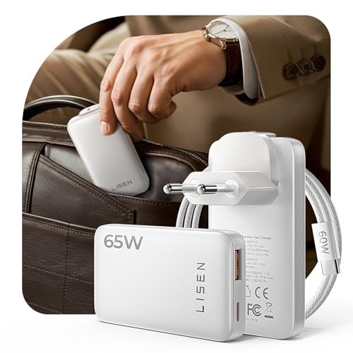 LISEN 65W USB C Netzteil, GaN2.0 USB C Ladegerät 65W Netzteil mit EU/US Stecker Flach USBC Schnellladegerät Schnellladen mit 60W Kabel für MacBook Air, iPhone, iPad, Samsung S25,Xiaomi 17,Dell XPS Pirαtе-Dеαl;s