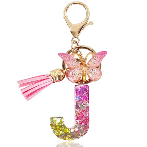 :Pirαtе-Dеαls Yanmucy Buchstaben Schlüsselanhänger Mädchen Ringe Lila Niedlich Schlüsselanhänger Glitzer mit Schmetterling Quasten Harz Keychain Aesthetic für Tasche Charme Frauen Mädchen Tasche Dec (J)