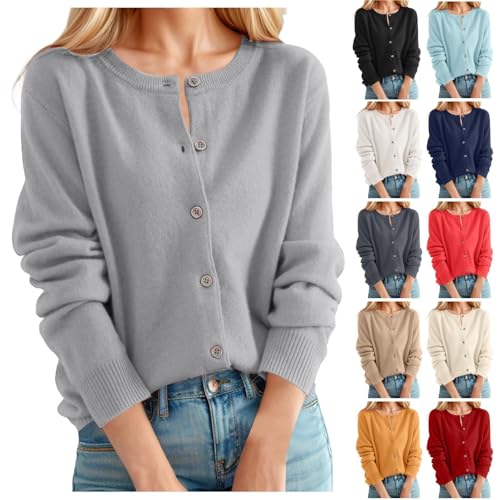 Kaschmir Strickjacke Damen Kurz Cardigan Langarm Pullover Wolle Weich Einfarbig Rundhalsausschnitt Dünner Strickpullover Mit Knopfleiste Elegant Warm Pirαtе-Dеα#ls Sweater Herbst Winter Casual Damen-Strickjacke