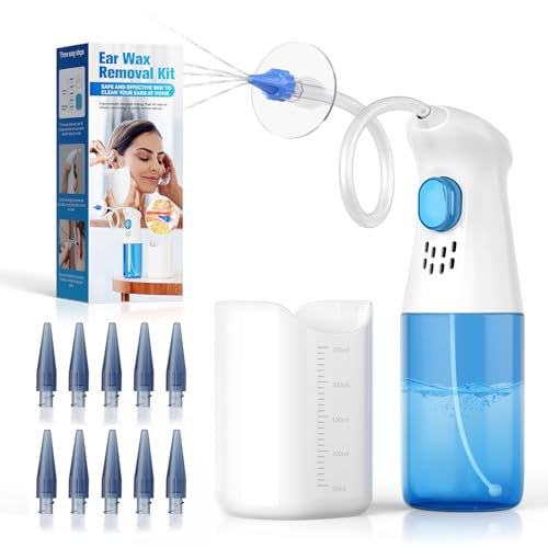 Ohrenreiniger Ohrenschmalz Entferner, Qimic Ohrenschmalz Entfernungs Kit, Ohrreiniger, Ohrenspülung für Erwachsene, Ohr Reinigung, Pi:rαtе-Dеαls Ohrspülsystem Ohrreinigungsset mit 10 austauschbaren Spitzen