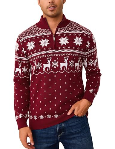 Crewhpo Weihnachts Pullover Herren Christmas Sweater Viertel-Reißverschluss Pull…
