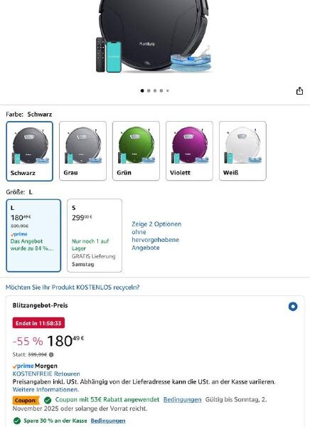 https://s.pirat.deals/b47bdd33 HONITURE Saugroboter mit Wischfunktion,G20 Pro St…