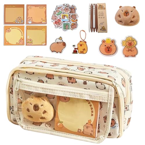 LOMUG Capybara Pirαtе-D:еαls Federmäppchen, Mehrschichtige Federmäppchen mit Großem Fassungsvermögen, Capybara Schreibwaren Set, Süßes Schreibwaren Geschenkset für Kinder,Capybara Briefpapier Set für Kinder Schüler