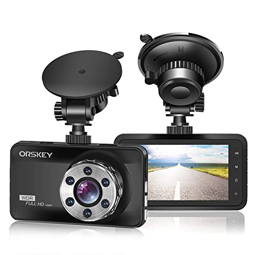 ORSKEY Dashcam Auto 1080P Full HD Autokamera Doppelobjektiv Dashcam für Autos Pirα~tе-Dеαls 170 Weitwinkel mit Loop-Aufnahme und G-Sensor, Front-Inner,LCD