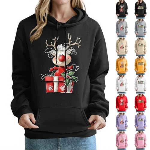 Generisch Damen Weihnachten Hoodie Sweatshirt Kapuzenpullover Langarm Oversize O…