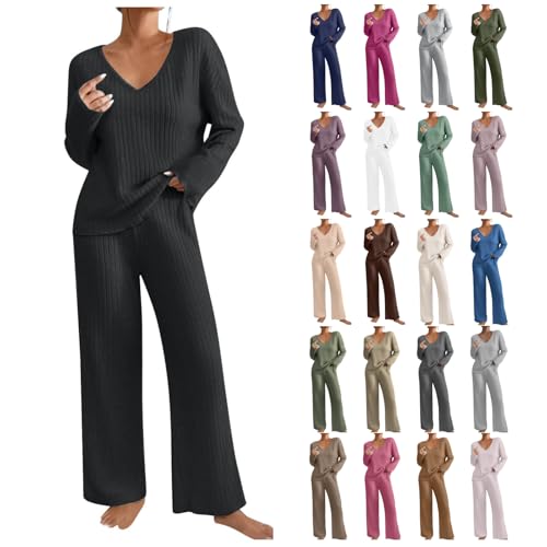 EMATOP Zweiteiler Damen Lässig Langarm Strickanzug Sport Einfarbig Jogginganzug …