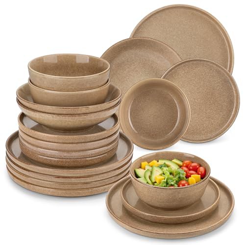 Steingut Geschirrset 6 Personen, vancasso ANYA Karamell Teller Set Modern 24 tei…