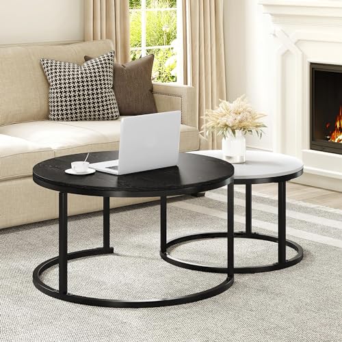 YITAHOME Couchtisch 2er Set Rund, Wohnzimmertisch Modern 86x86x48cm, Stapelbar, …