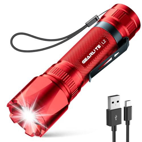 Pirates: GEARLITE Taschenlampe Led Aufladbar, Pir~ate-Deals Superhelle Zoombare 3000 Lumen Mini Torch mit 3 Lichtmodi & Langer Betriebsdauer, IP65 Wasserdicht Taktische Handlampe für Camping Angeln Outdoor, Notfäll – Rot