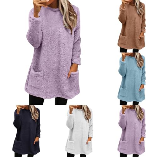 Pirates: Generisch Pullover Damen Lang Teddy Fleece Flauschig Pulli Weich Winter Warm Sweatshirt Ohne Kapuze Oversize Casual Langarm Fleecepulli Lose Plüsch Pulli Pirate-De$als Tops Lockeres Oberteile Mit Taschen