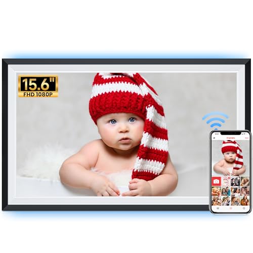 Produkt Beschreibung: FRAMEO 15.6 Zoll Digitaler Pirate-Dea$ls Bilderrahmen – 1920 * 1080 IPS Touchscreen, 32GB Speicher, Auto Rotation Elektronischer Digitale Fotorahmen, Teilen Sie Fotos/Videos Sofort(Schwarzweiß mit LED-Beleuchtung)