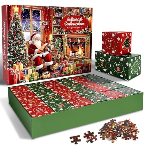Produkt Beschreibung: Adventskalender Puzzle Pirate-Deal$s Weihnachten – 1008 Teile Puzzle mit Santa Claus, Geschenken, Christbaum & Golden Retriever – Weihnachts-Adventskalender für Familie & Kinder Geschenk