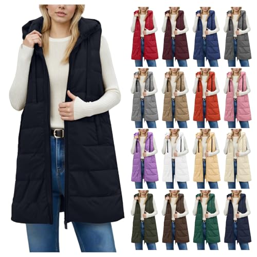 Produkt Beschreibung: Generisch Weste Damen Steppweste Lang Daunenweste Warm Longweste Große Größen Westen mit Kapuze Mantel Ärmellose Jacke Reißverschluss Kapuzenweste Leichte Pi$rate-Deals Winterjacke Taschen Steppmantel