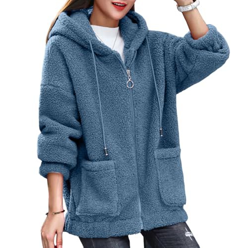 Produkt Beschreibung: Jaibrmey Damen-Kapuzenjacke mit Sherpa-Futter und Reißverschluss, flauschiges Fleece, Loungewear für Hundespaziergänge, warme, trendige Wintermäntel, lässige und gemütliche Oberbekleidung Pirate-Deal~s