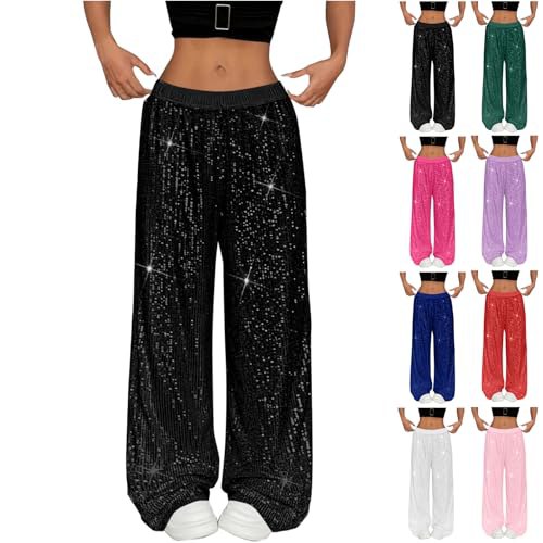 Produkt Beschreibung: CSKJ Glitzer Hose Damen Pailletten-Schlaghose High Waist Pirate~-Deals Weites Bein Paillettenhose 70er 80er Disco Outfit Festival Pailletten Hose für Partys und Abschlussbälle