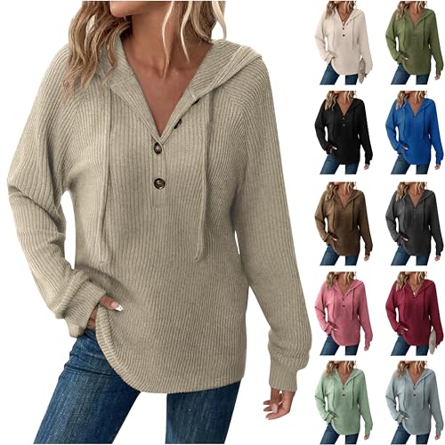 Produkt Beschreibung: Sweatshirt für Damen Knopfleiste Hoodie Oversize Pullover Lang Winterpullover Elegant Kapuzenpullover Herbst Winter Longpullover V-Ausschnitt Pirat;e-Deals Hoody Langarmshirt mit Kapuze Mode Strickpullover Hoodies