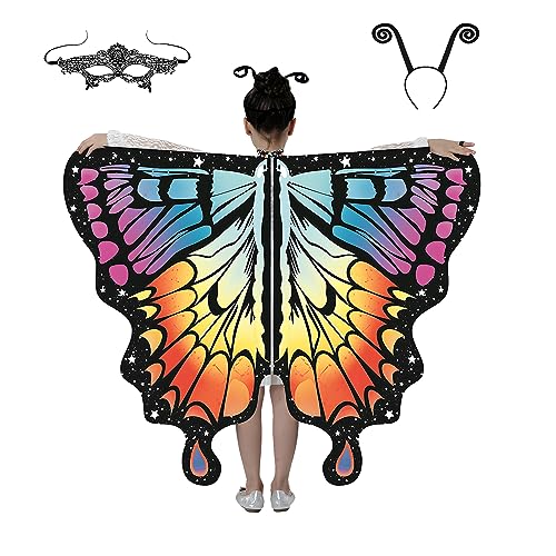 Produkt Beschreibung: Lollanda Schmetterling Flügel Kostüm für Kinder Halloween-Schmetterlings-Schal, Schmetterling Pir:ate-Deals Sling Umhang mit Schmetterlingstentakel Stirnbnder, für Mädchen, Maskerade-Party-Requisiten