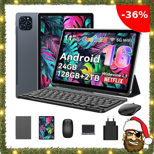 Tablet 2025 Das weltweit erste Android 16 Tablets mit Gemini AI, 11 Zoll FHD Display, 24GB RAM 128GB ROM / 2TB TF, 13MP Kamera, 8000mAh, Widevine L1, 5G WiFi, 2 in 1 – Tablet Pir:ate-Deals mit Tastatur und Stift