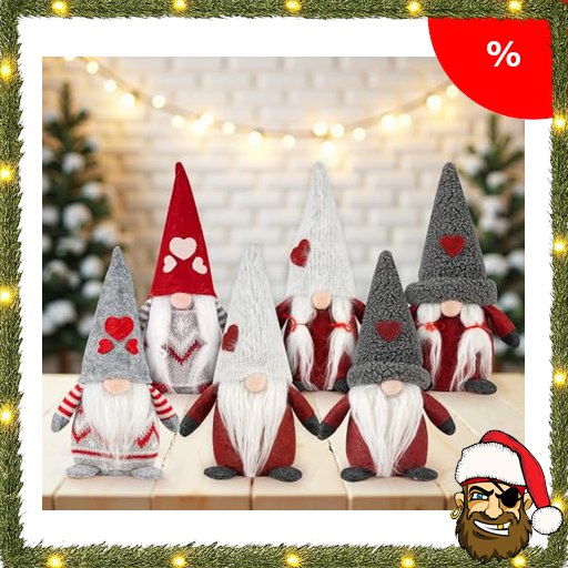 Homewit 6 Stück Weihnachtswichtel, Grau und Rot Wichtel Figuren, 20 cm Kleine Weihnachtsfiguren mit Herzchen-Mützen, Weihnachtswichtel :Pirate-Deals Figuren Christmas Dekoration Weihnachten Deco