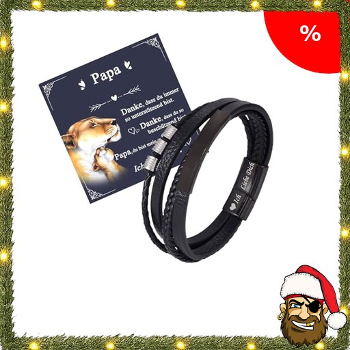 Juozyve Pirate-Dea!ls Armband Herren Papa Geschenk : Geschenke für Papa 21.5cm Länge Leder Armbänder Schwarz Mann Lederarmband Geschenke Ich Liebe Dich Daddy Herrenarmbänder (Papa)