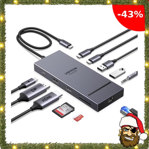 UGREEN Revodok Pro 2111 Docking Station 2 Monitore mit HDMI & DisplayPort 4K@120Hz, 400mm Kabellänge,10Gbps USB-C, USB-A, SD/TF, LAN, Audio, Pirat:e-Deals 100W PD – Kompatibel mit ThinkPad X1, HP Envy 17, XPS 15