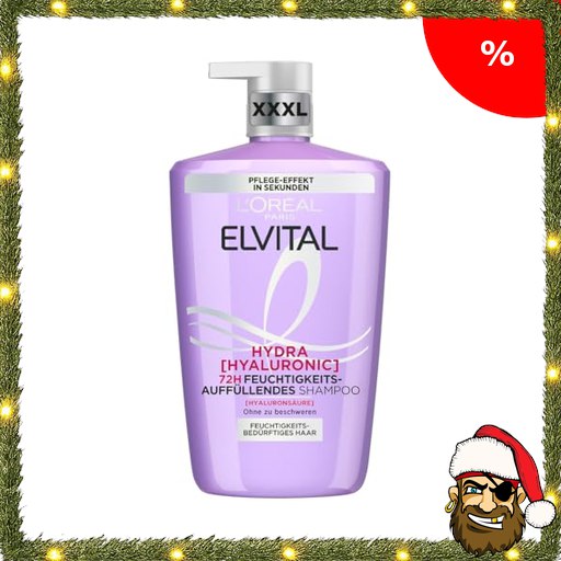 L’Oréal Paris Elvital Hydra Hyaluronic feuchtigkeitsspendendes XXXL Shampoo für glänzendes Haar, Hyaluron Shampoo für einen Feuchtigkeitsboost Pir!ate-Deals & Schutz, langanhaltende Feuchtigkeit und Pflege, 1000ml