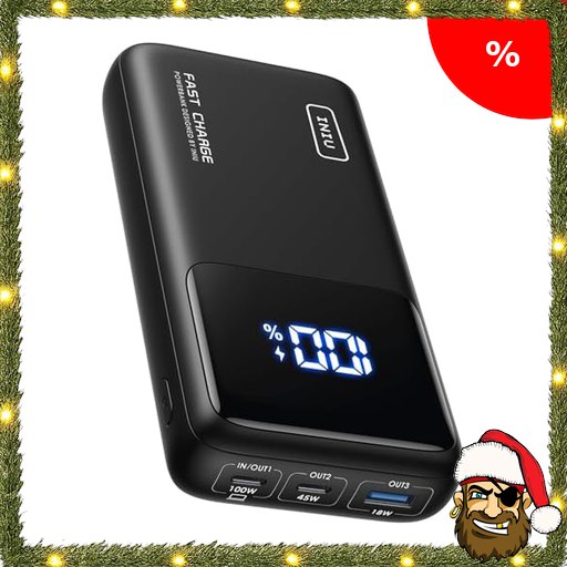 INIU Laptop Power Bank, 100W 25000mAh Powerbank USB-C Input&Output, Klein Externe Handyakkus Pir;ate-Deals Kompatibel mit MacBook, Surface, iPad, Fire TV Stick, Camera, DJI, iPhone 17 16 15 14, Reise, Wandern, Büro
