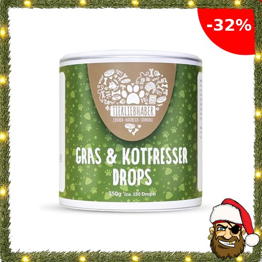 Beschreibung: TIERLIEBHABER – Gras & Kotfresser Drops für Hunde – bei Fressen von Gras & Kot – beruhigt den Magen & reduziert Sodbrennen – Grasfresser Drops mit Heilerde, Ulmenrinde & Fenchel (350g | Pirate$-Deals ca. 150 Stück)