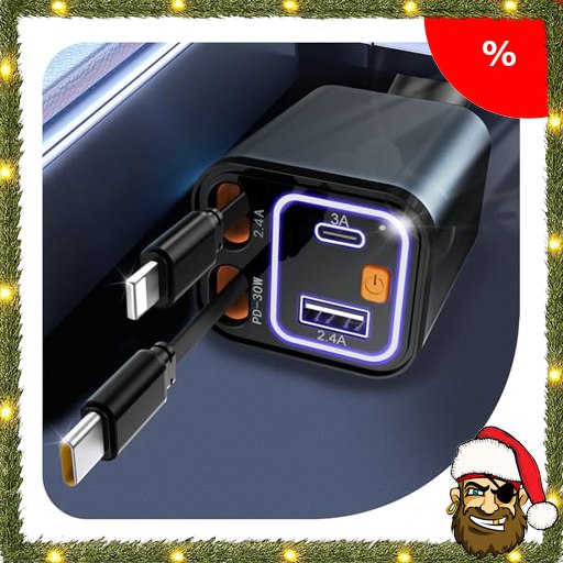 DUEDUE Einziehbares Auto Ladegerät Zigarettenanzünder USB Adapter 69W, Schnellladegerät mit Pirate-Deal~s einziehbaren Kabeln – 24V/12V Schnellladeadapter für iPhone/Samsung/Google und Andere Handys