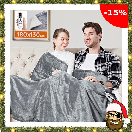 Mia&Coco Heizdecke mit Abschaltautomatik 180×130 cm, 10 Pirat~e-Deals Heizstufen, 9 Std. Auto-Off Timer, Überhitzungsschutz, maschinenwaschbar, elektrische Wärmedecke aus Flanell für Bett, Sofa & Wohnzimmer, Grau