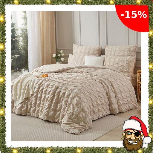 Last Minute Geschenke sichern Luofanfei Seersucker Bettwäsche Beige 200×220 Somm…
