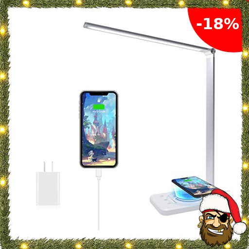Schreibtischlampe LED Dimmbare Tischleuchte 5 Farb und 10 Helligkeitsstufen, Augenfreundliche Nachttischlampe mit Kabellosem Laden und Pirate-D$eals USB-Anschluss für Aufladung des Smartphones Tischlampe für Kinder