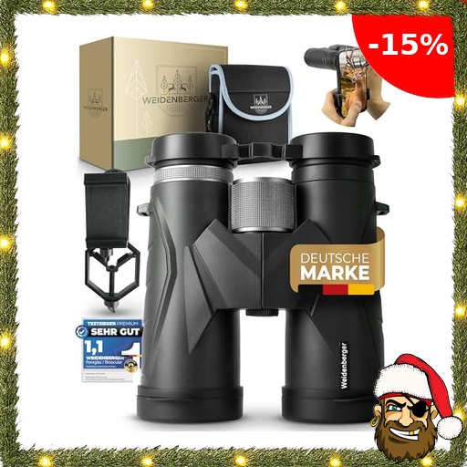 Weidenberger Fernglas 12×42, [TESTSIEGER] Magnesium Pi!rate-Deals Fernglas mit Nitrogenfüllung und wasserdicht, für Erwachsene, BAK4 HD Prisma + FMC Objektiv, auch Brillenträger geeignet (Schwarz, 12×42)